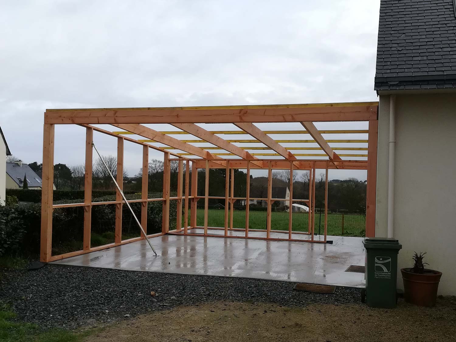 Carport monté sur une dalle en béton.